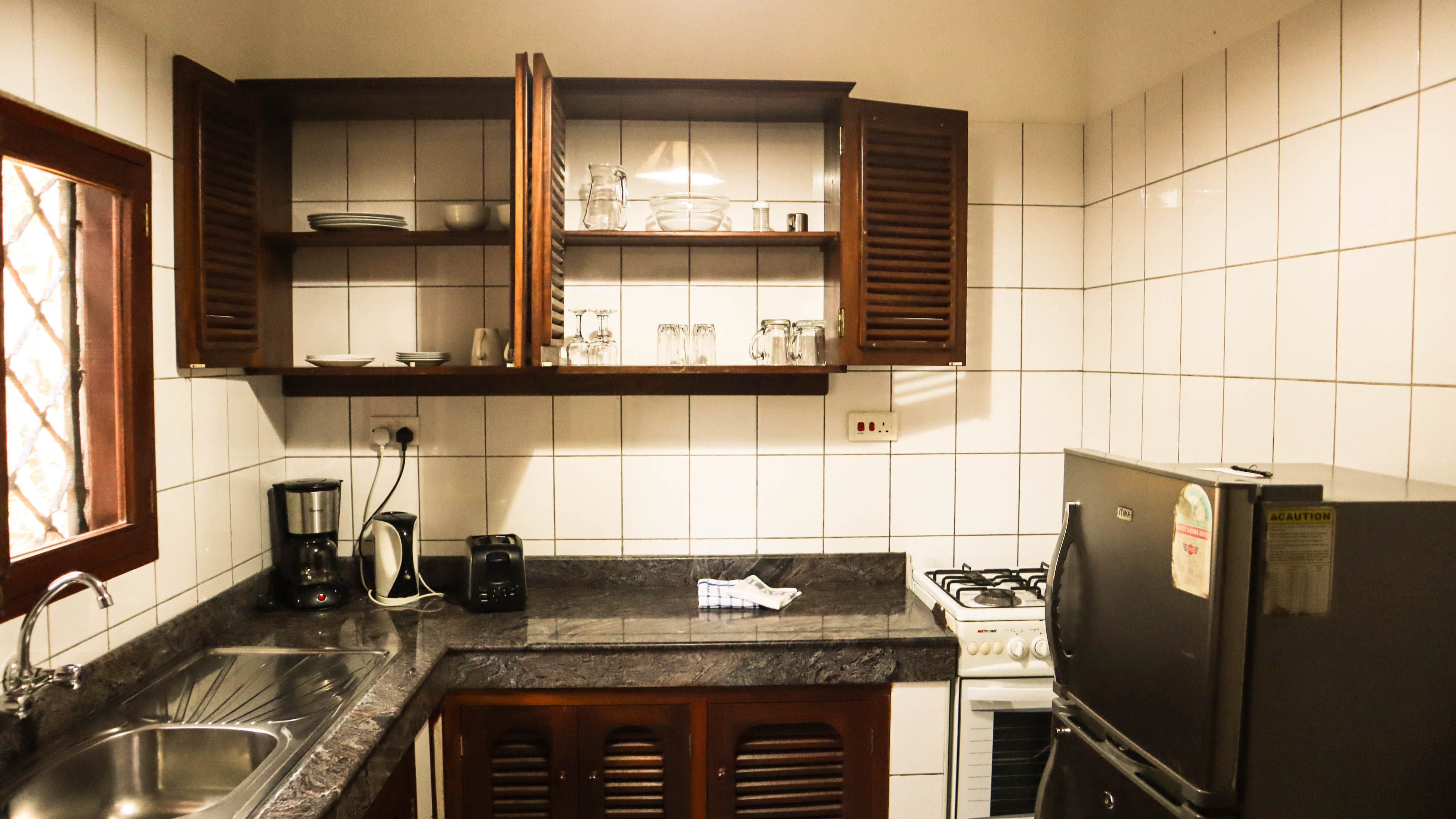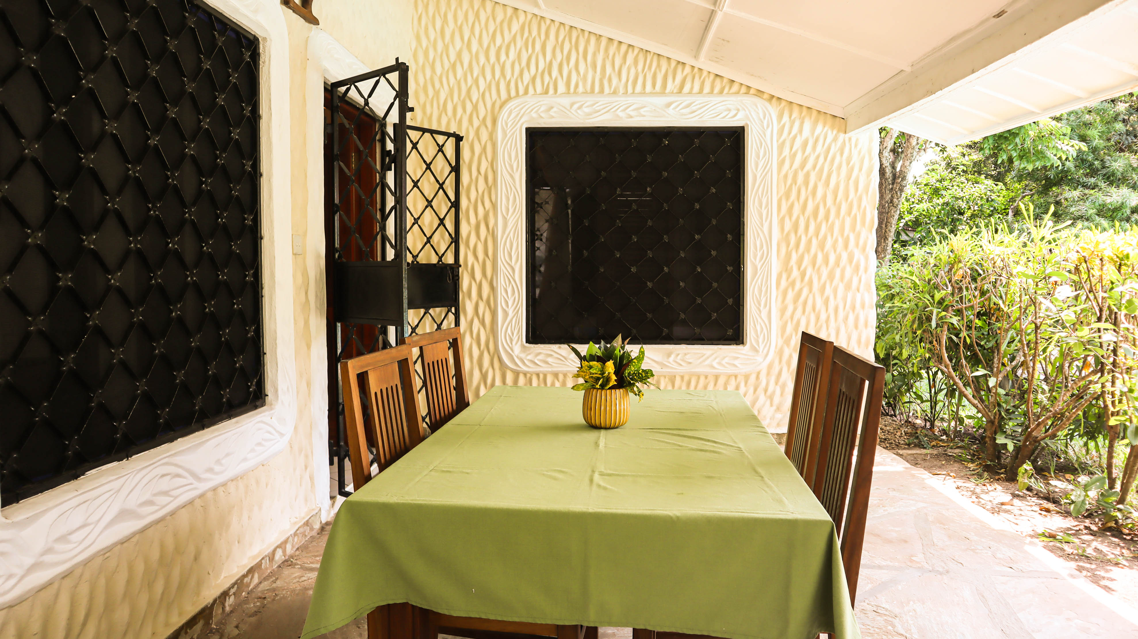 The bathroom features heated water, while the fully fitted kitchen is ready for all your cooking needs. With warm, welcoming staff and a serene natural setting, this cottage offers a perfect retreat for families or friends looking to enjoy the beauty and calm of Diani